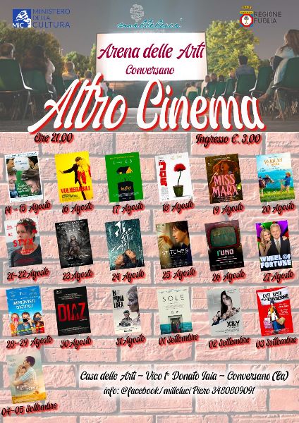 Altro Cinema; con questo titolo si terrà a partire da sabato 14 agosto un’arena cinematografica presso la Casa delle Arti, realizzata con il sostegno del Ministero della Cultura.