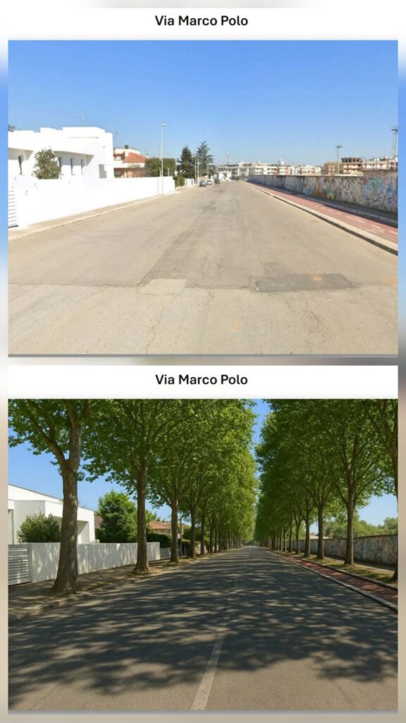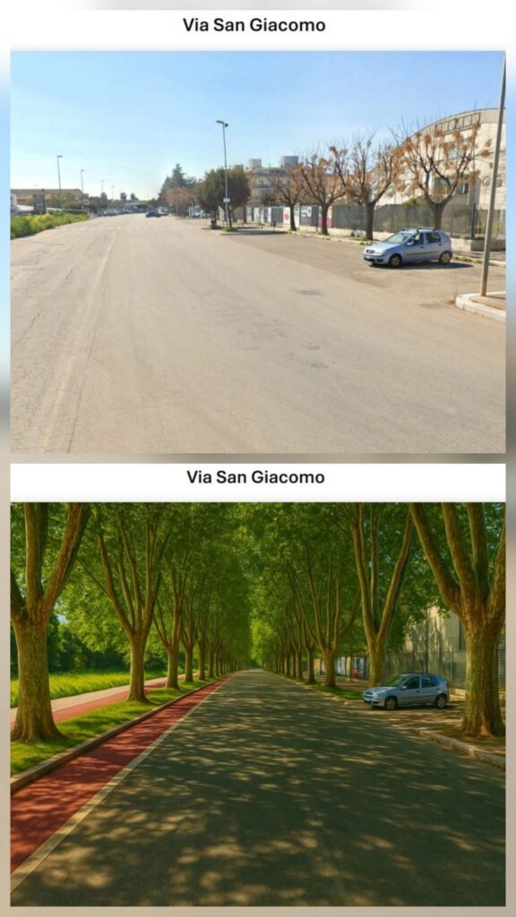 Interessanti sono risultati i contributi e le simulazioni presentate da Paolo Perfido che ha mostrato quale sarebbe l’impatto, sia ambientale che visivo, se alcune delle strade della città di Conversano potesse essere riforestate con alberi di alto fusto. E ha prospettato come diventerebbe via Marco Polo (adiacente al campo sportivo), via F. Iaia e via San Giacomo.