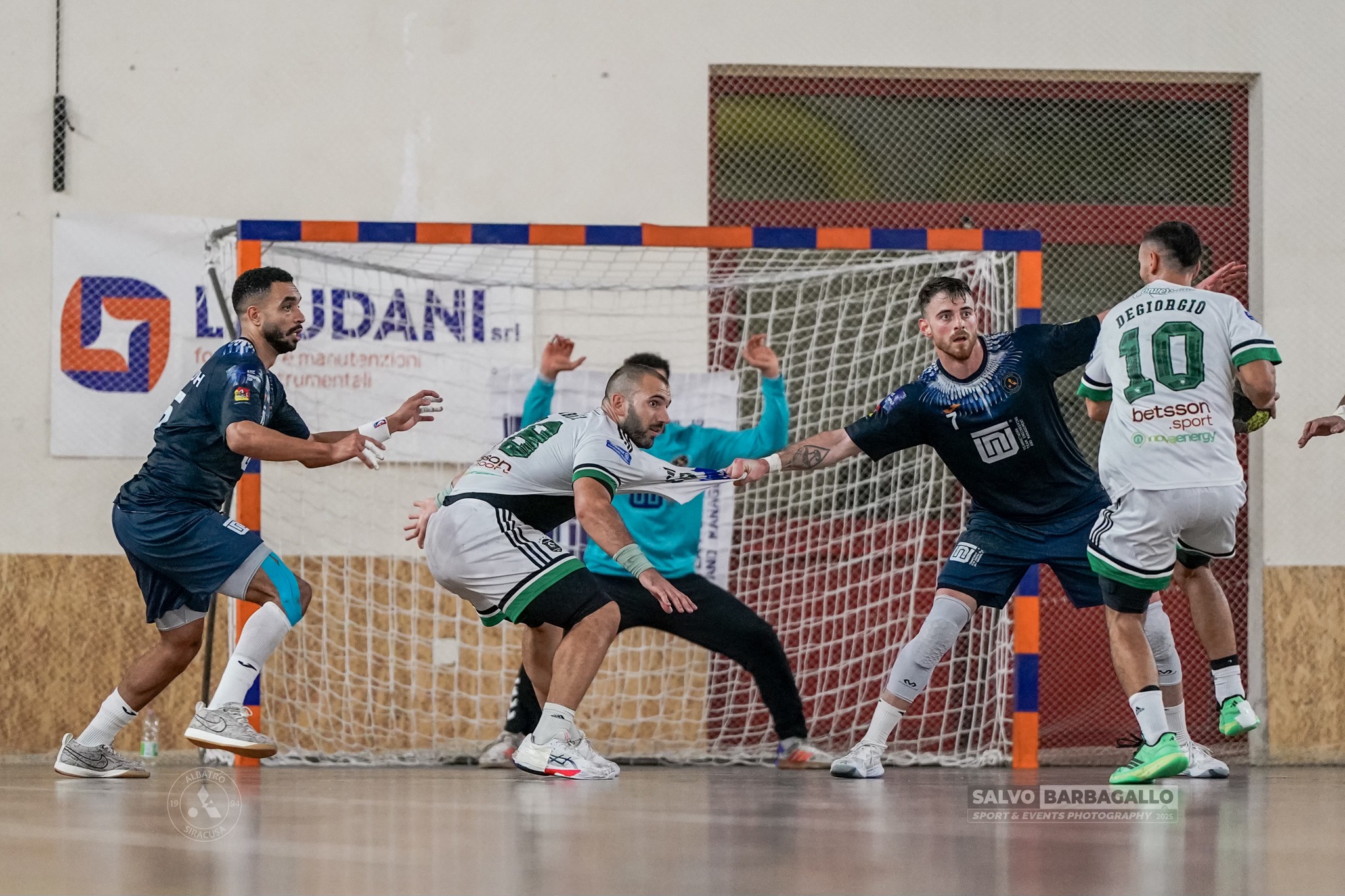 I biancoverdi non restano aggrappati al risultato grazie soprattutto all’ennesima ottima prestazione di Pasqualino Di Giandomenico, che con le sue parate tiene a galla i compagni nel primo tempo, che si conclude sul 14 a 8 per i siciliani.
