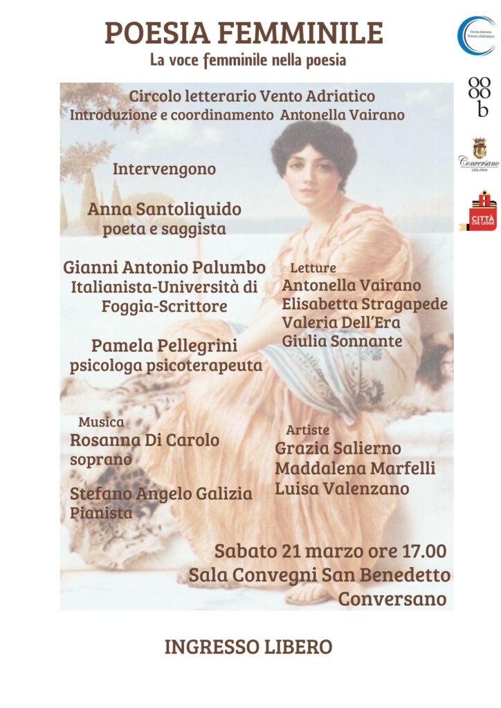 Le letture a cura delle poete Antonella VAIRANO, Elisabetta STRAGAPEDE, Valeria DELL’ERA, Giulia SONNANTE (in rappresentanza del Circolo letterario Vento Adriatico).